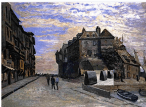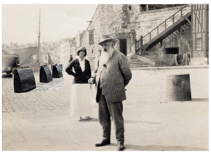 (Photographie anonyme, Claude Monet devant la Lieutenance, à Honfleur Collection Éric Lefèvre, in Benjamin Findinier, Claude Monet Honfleur, Éditions des Falaises)