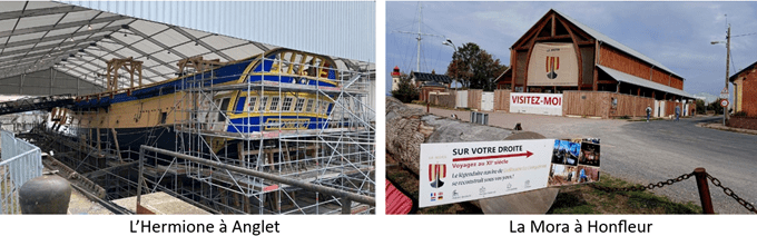 A Rochefort, comme à Honfleur, on retrouve à l’origine des deux projets une association avec les mêmes intitulés, le nom du navire historique accolé à celui du héros, et des membres passionnés d’histoire maritime. Si en Charente, les pionniers de 1992 ont depuis longtemps laissé la place, ce sont des responsables de l’association L’Hermione – La Fayette qui ont piloté le dossier honfleurais. Le premier président de l’association La Mora – Guillaume le Conquérant était le vice-président de l’association charentaise jusqu’en 2017. A son décès, c’est l’ancien trésorier devenu président de l’association L’Hermione – La Fayette qui a pris la barre à Honfleur en 2022. On reste en famille !