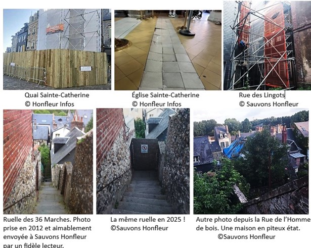 Le 14 octobre 2025, « lors du conseil municipal de Honfleur (Calvados), Michel Lamarre, maire, a fait voter la mise en place d’un diagnostic obligatoire des immeubles de l’îlot Sainte-Catherine, en réaction d’un nouvel arrêté de mise en sécurité» signalait Ouest-France. C’est tout ! Et il a donné quoi ce diagnostic ? Il a été contrôlé par la mairie ? On attend encore le bilan qui était sous sa responsabilité…